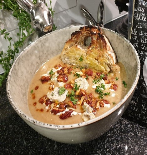 Peal, quarter and core the pears. Add all other ingredients to a saucepan and bring to a gentle simmer. Add pears and simmer until just tender. Allow to cool in liquid then chill until required or use. (Alternatively for a quick and easy replacement you can use tinned pears! Simply drain off the liquid and toss with some cinnamon through the left over walnut caramel)